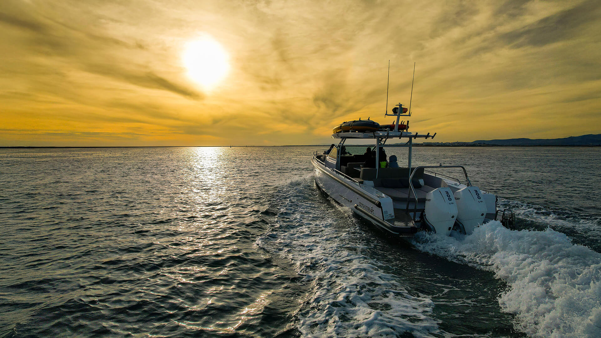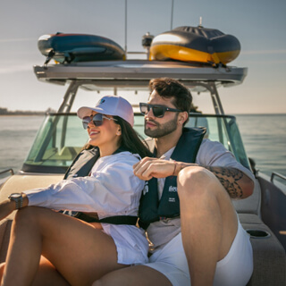 The Axopar 37 Sun Top features a sleek and distinctive Scandinavian design with an extended sun-top roof that provides generous shade while maintaining an open-air atmosphere. It allows guests to fully enjoy sunny days at sea while remaining comfortably protected.