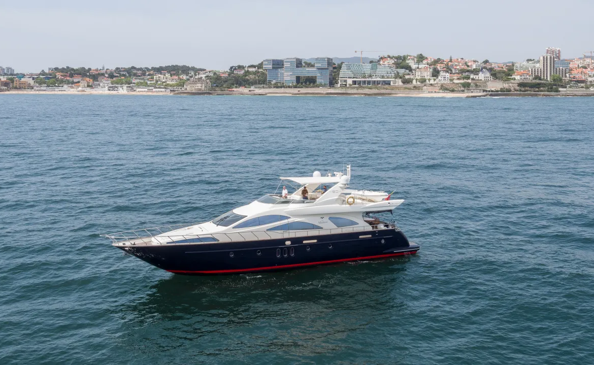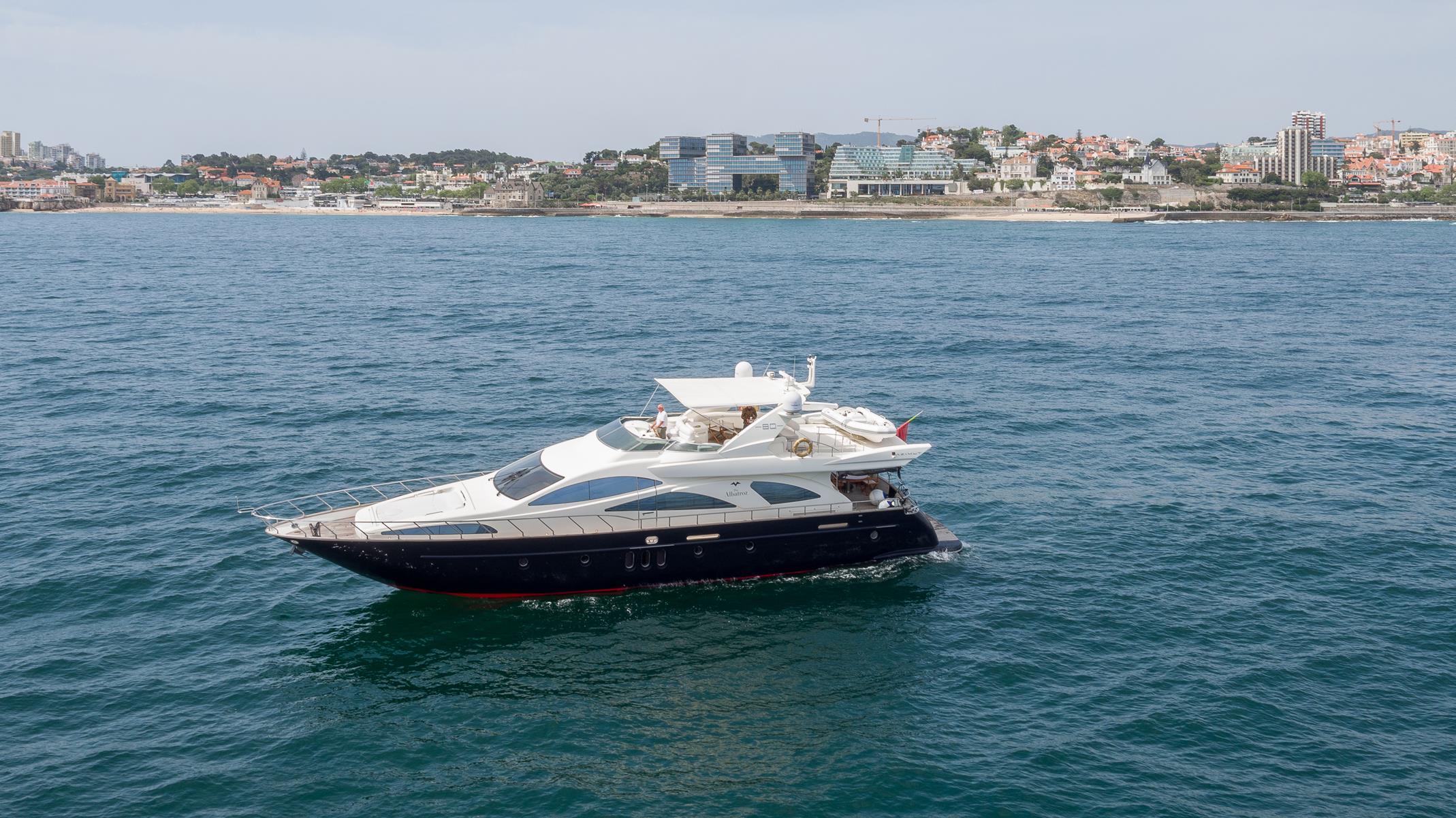 The Albatroz is a stunning luxury motor yacht available for bespoke yacht charters along the Algarve and greater Portuguese coast. With a length of 80 feet (≈ 24.4 meters) and powerful twin Caterpillar engines delivering up to 32 knots, this yacht blends performance, comfort, and elegance for unforgettable sea experiences.